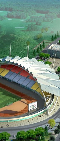 膜結構中所使用的膜材料每平方壹公斤左右,由于自重輕,加上鋼索、鋼結構高強度材料的采用,與受力體系簡潔合理——力大部分以軸力傳遞,故使膜結構適合跨越大空間而形成開闊的無柱大跨度結構體系。